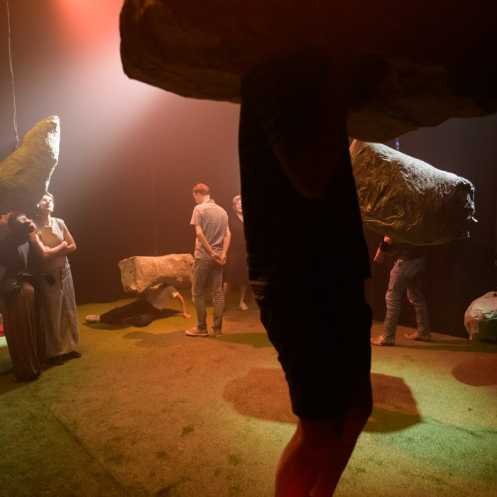 How does nature look at us? What is the natural state of things? These were some of the research questions that second-year students of the Amsterdamse Hogeschool voor de Kunsten ATD tackled in the project ‘Aangeraakt – Rocks is a verb’. In interdisciplinary teams of upcoming directors, scenographers and light and sound designers, they worked for five weeks on a study of deep time.